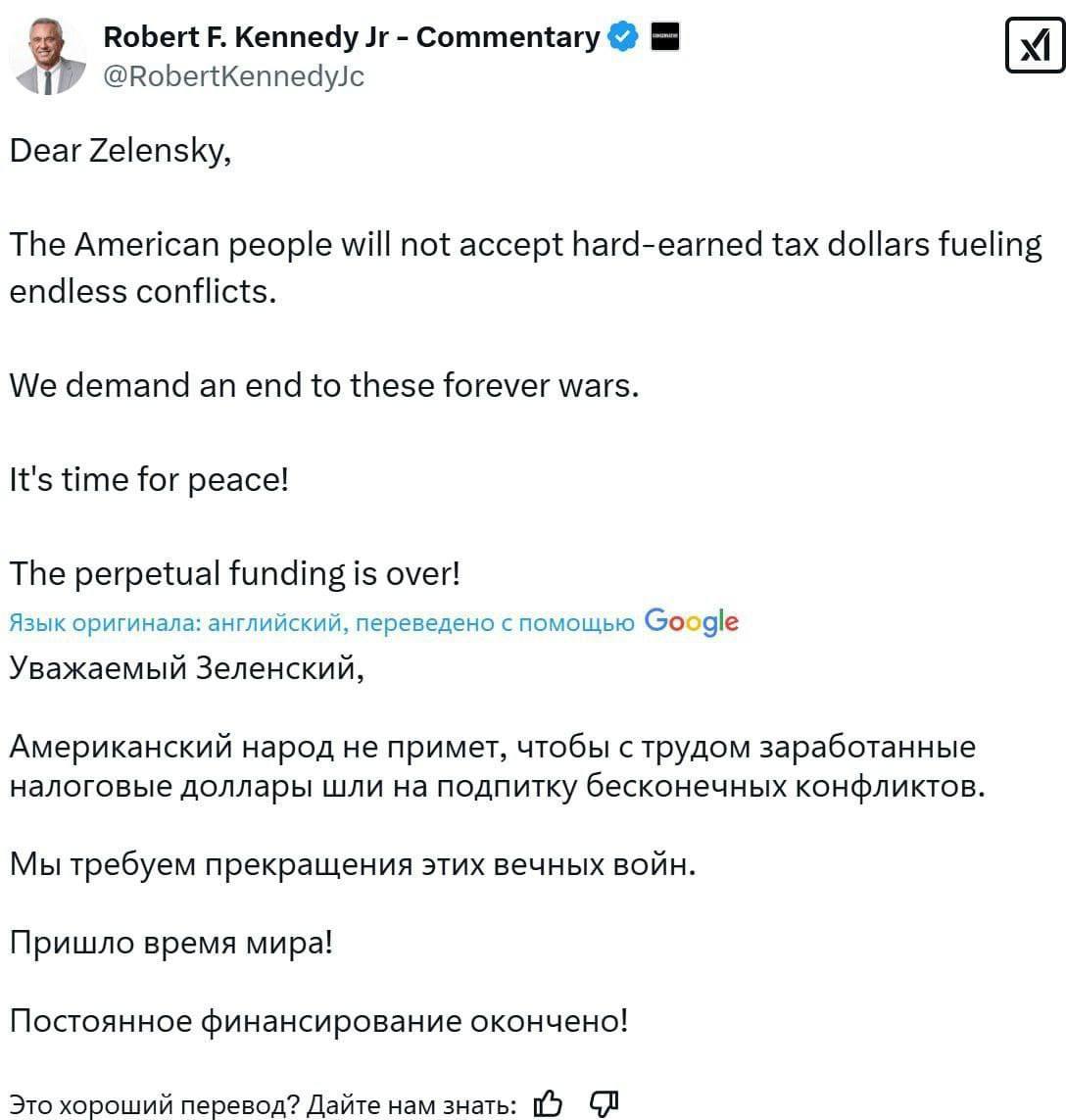 Близкий к Трампу Кеннеди-младший обратился к Зеленскому с требованием остановиться.