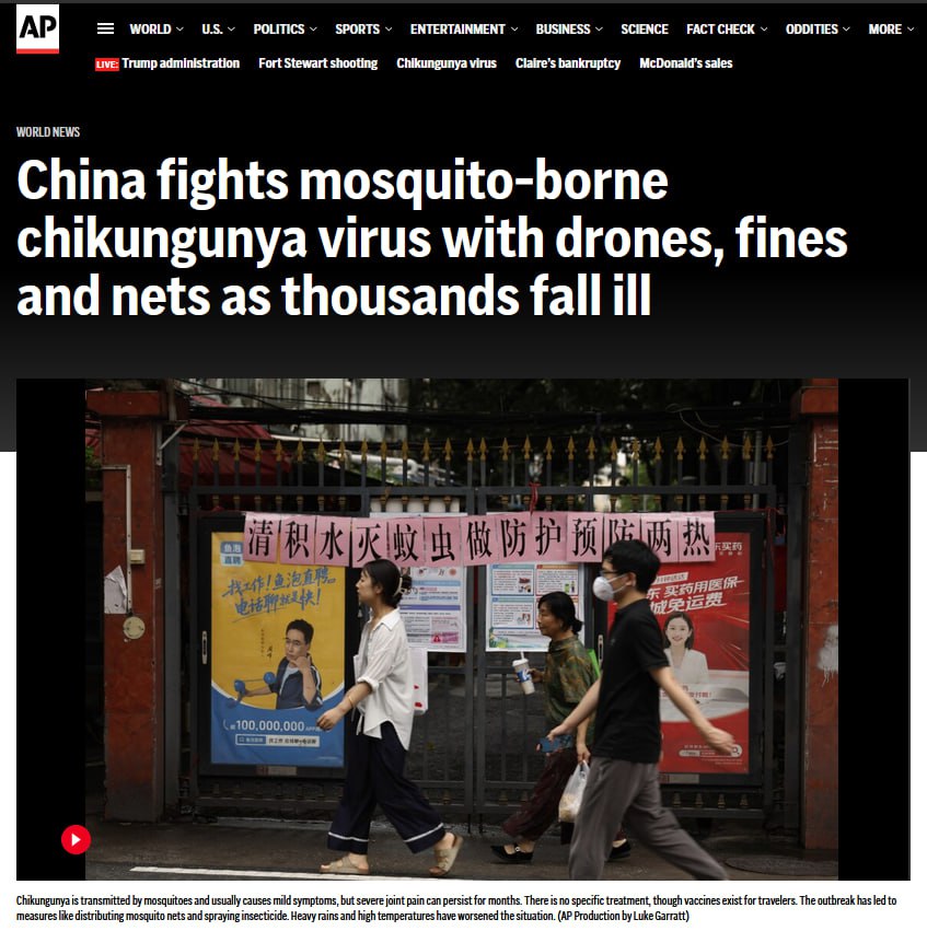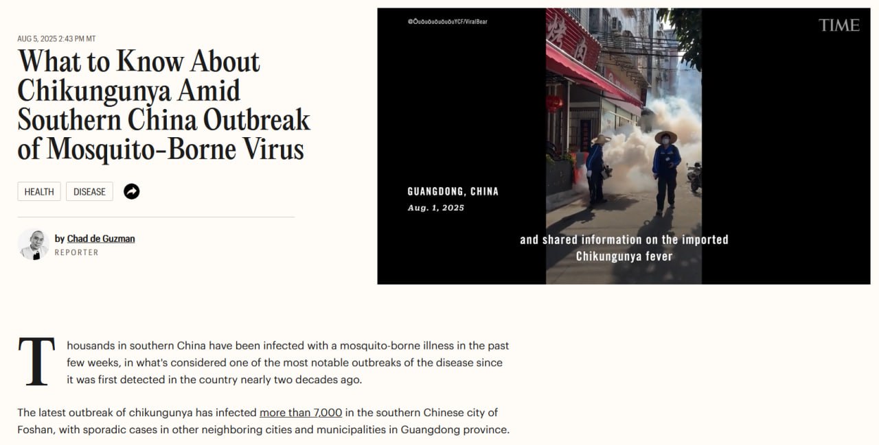 🔴🇨🇳 Чикунгунья в Китае: тысячи больных и возвращение карантина