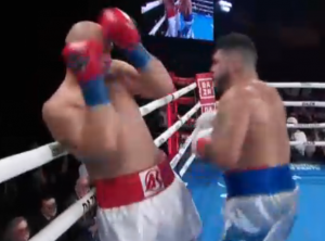 В 7-м раунде Коэ зажал соперника в углу и принялся избивать. Рефери пришлось реагировать.