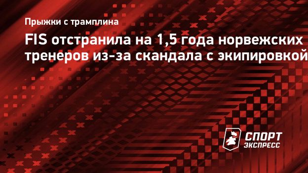Международная федерация лыжного спорта и сноуборда (FIS) отстранила на 1,5 года норвежского тренера Магнуса Бревика, его помощника Томаса Лоббена и сервисмена Адриана Ливельтена из-за их предполагаемой причастности к незаконным манипуляциям с экипировкой на чемпионате мира в Тронхейме, сообщает пресс-служба FIS.