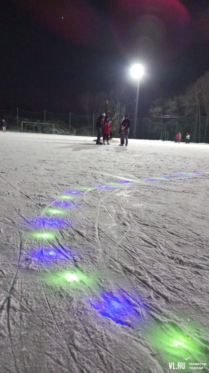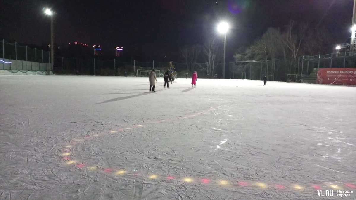 Сегодня, 2 января, во Владивостоке возобновил свою работу ещё один большой городской каток. Он организован на бывшем тренировочном стадионе ФК «Луч» в районе старого аэродрома на Седанке, общая площадь катка – 6500 квадратных метров. Правда, вход платный – 300 рублей для взрослых и 200 для детей. Фишка катка – спрятанные под лёд новогодние гирлянды.