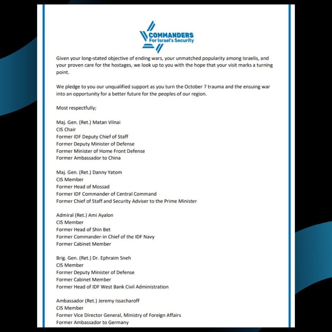 Они призвали его использовать свой визит на Ближний Восток для достижения прекращения огня в секторе Газа, возвращения заложников и создания новой региональной коалиции по безопасности, в состав которой войдёт и Израиль.