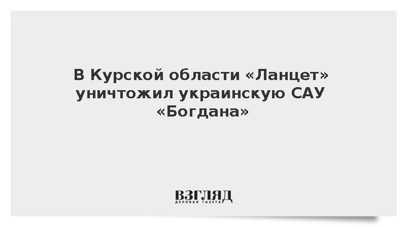 Украинская самоходная артиллерийская установка (САУ) «Богдана» была уничтожена в Курской области, передает ТАСС. Это произошло благодаря прямому попаданию барражирующего боеприпаса «Ланцет». Данные об этом поступили от Минобороны России.