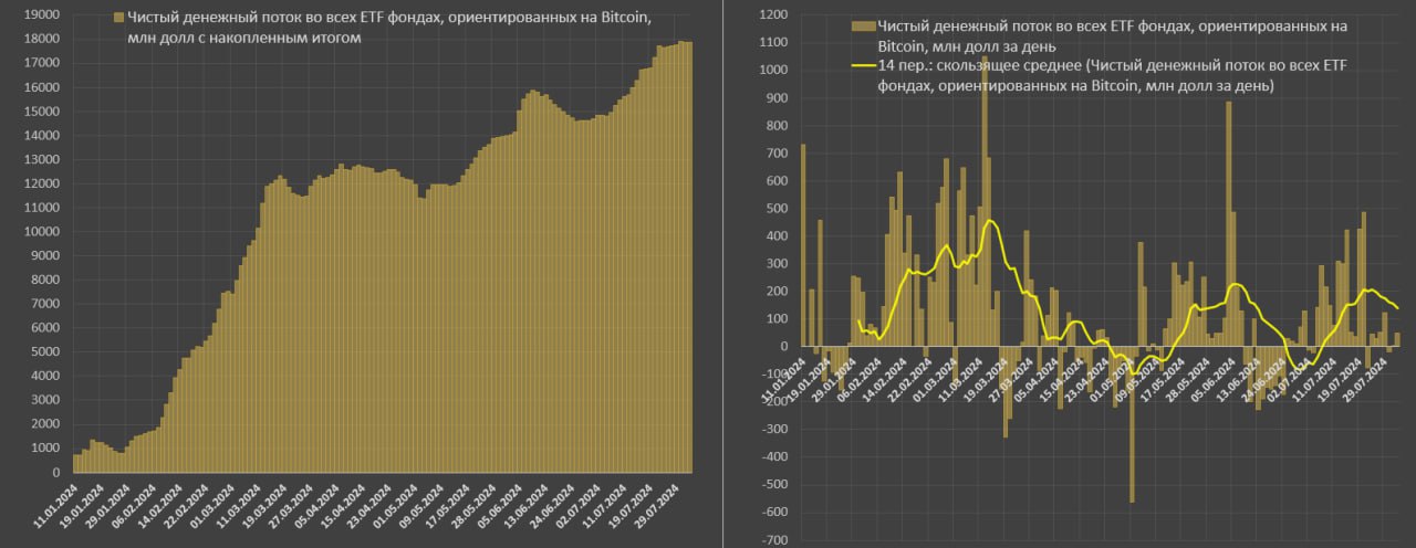 Приток в ETF на Bitcoin примерно на 6 млрд с 15 мая и +3 млрд за месяц никак не исправили медвежье позиционирование.