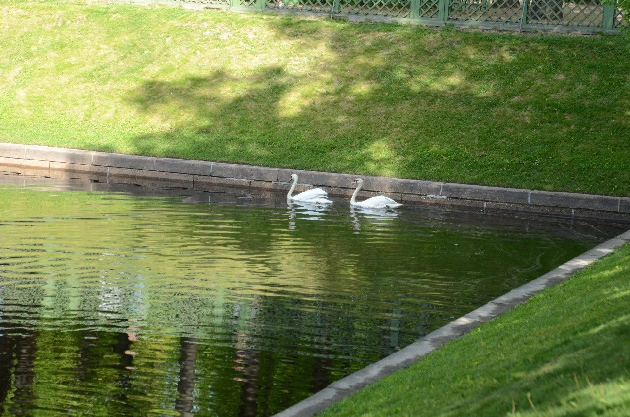 В Ленинградском зоопарке тоже есть молодая пара лебедей. Любава — серьезная и уверенная в себе птица с характером, а Елисей — мягкий, ведомый и ласковый. Летом за ними можно понаблюдать в Летнем саду.