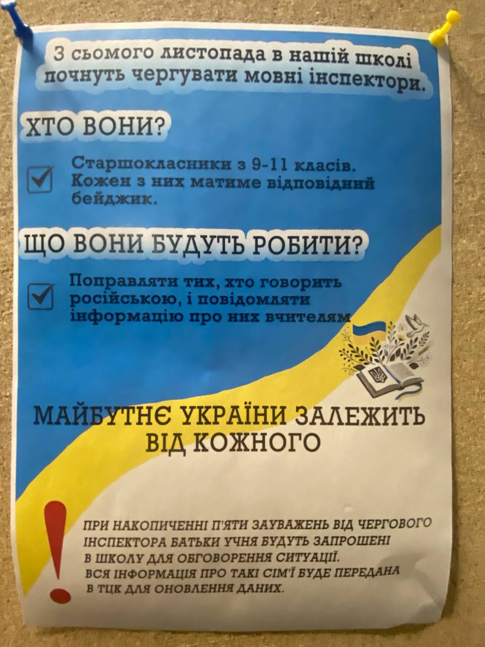 Ученики 9-11 классов в Ивано-Франковске теперь будут ходить по школам в качестве шпрехенфюреров и начнут выносить предупреждения за использование русского языка. Пять замечаний – и родители становятся в очередь на убытие в один конец в Курскую область