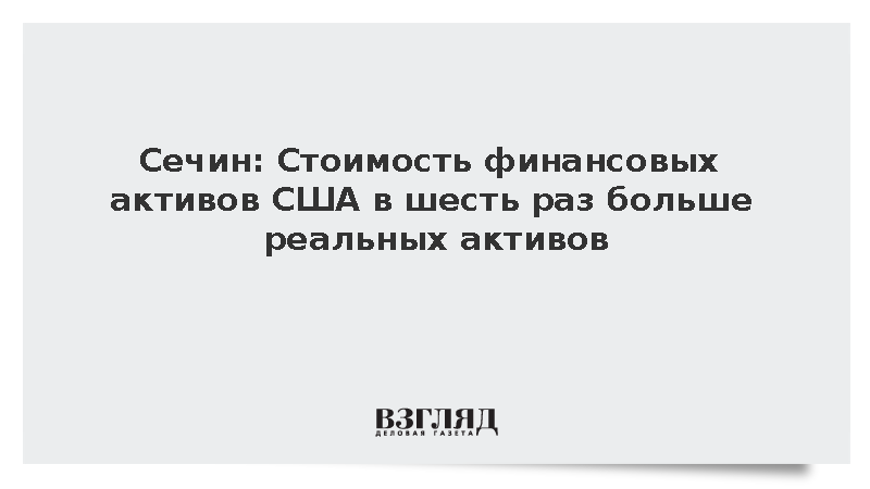 Сечин на Веронском Евразийском экономическом форуме сообщил, что стоимость финансовых активов США в шесть раз превышает стоимость активов реальной экономики. «Гигантский пузырь ликвидности привел к перетоку богатства из реальной экономики в финансовый сектор», – заявил он, подчеркнув влияние этого процесса на глобальную экономику, передает ТАСС.