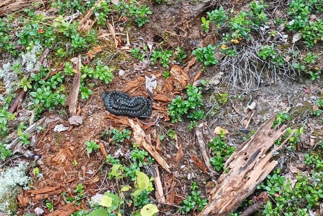 Житель Архангельска встретил змею в лесу недалеко от города, когда ходил за морошкой.