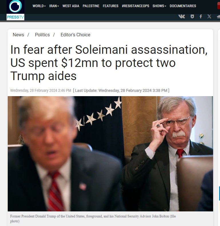 PressTV: в страхе после убийства Сулеймани США потратили $12 млн на защиту двух помощников Трампа