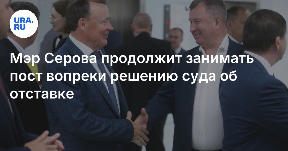 Мэр Серова (Свердловская область) Василий Сизиков продолжит работать на своем посту, пока решение местного районного суда не вступит в силу. Особенности процедуры URA.RU объяснил собеседник, близкий к городской думе.