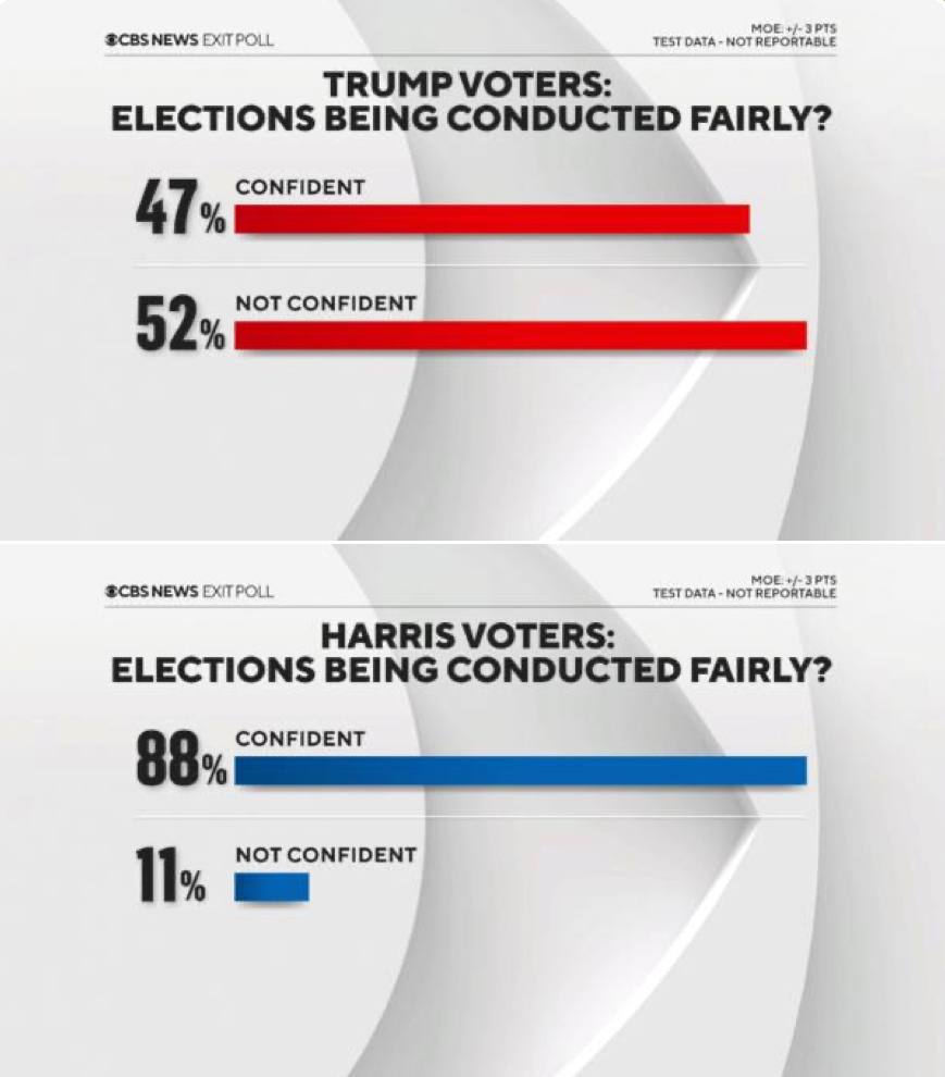 Среди тех, кто поддерживает Харрис, в честности голосования уверены 88%.