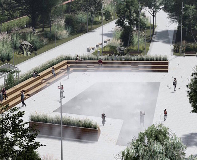 Проект предполагает, что в новом сквере появятся несколько зон: для тихого отдыха, для детских игр, для прогулок. Пространство должно также включать центральную площадь с фонтаном и бюстом Александра I, а также аллею с березами и парковку.
