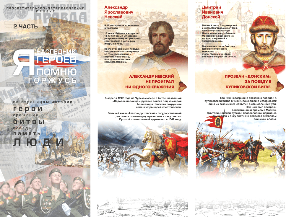 В каждой школе проект «Я наследник героев» длится неделю, за это время у старшеклассников, которые не признают навязанное мнение со стороны взрослых, меняются взгляды на многие вещи. Проект предусматривает размещение в каждой школе, вузе, сузе области передвижной экспозиции с архивными фотоматериалами о преступлениях против российского народа в разные эпохи и в наше время. Экспозиция рассказывает о подвигах россиян как на фронтах, так и в тылу, причинах и целях СВО. Отдельные стенды знакомят школьников с героями спецоперации.