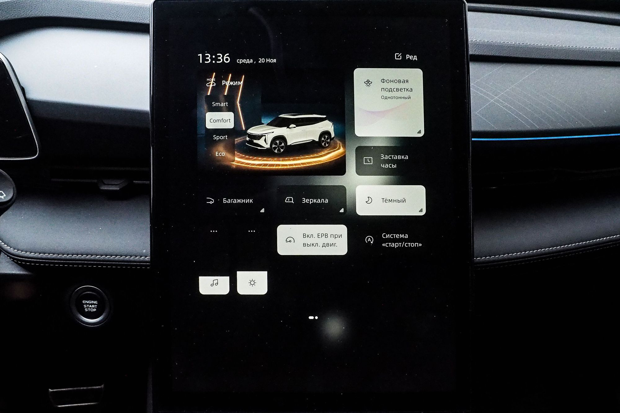 Стоит открыть водительскую дверь, как сразу понимаешь, что и здесь создатели Cityray решили действовать в соответствии с последними веяниями моды. А эти тенденции, заданные разработчиками электрокаров Tesla, подразумевают управление основными функциями автомобиля не при помощи кнопок, клавиш и ротор-контроллеров, а через меню на сенсорном экране головного медиаустройства. Экран этот, естественно, должен быть как можно больше, и здесь он первым делом бросается в глаза. Хотя 13,2 дюйма – не рекордная диагональ, вертикально расположенный экран с традиционным соотношением сторон оказывается значительно больше, чем горизонтальные «сосиски». А уж 10,5-дюймовый дисплей, заменяющий в Cityray приборную панель, на фоне главного экрана и вовсе смотрится крошечным.