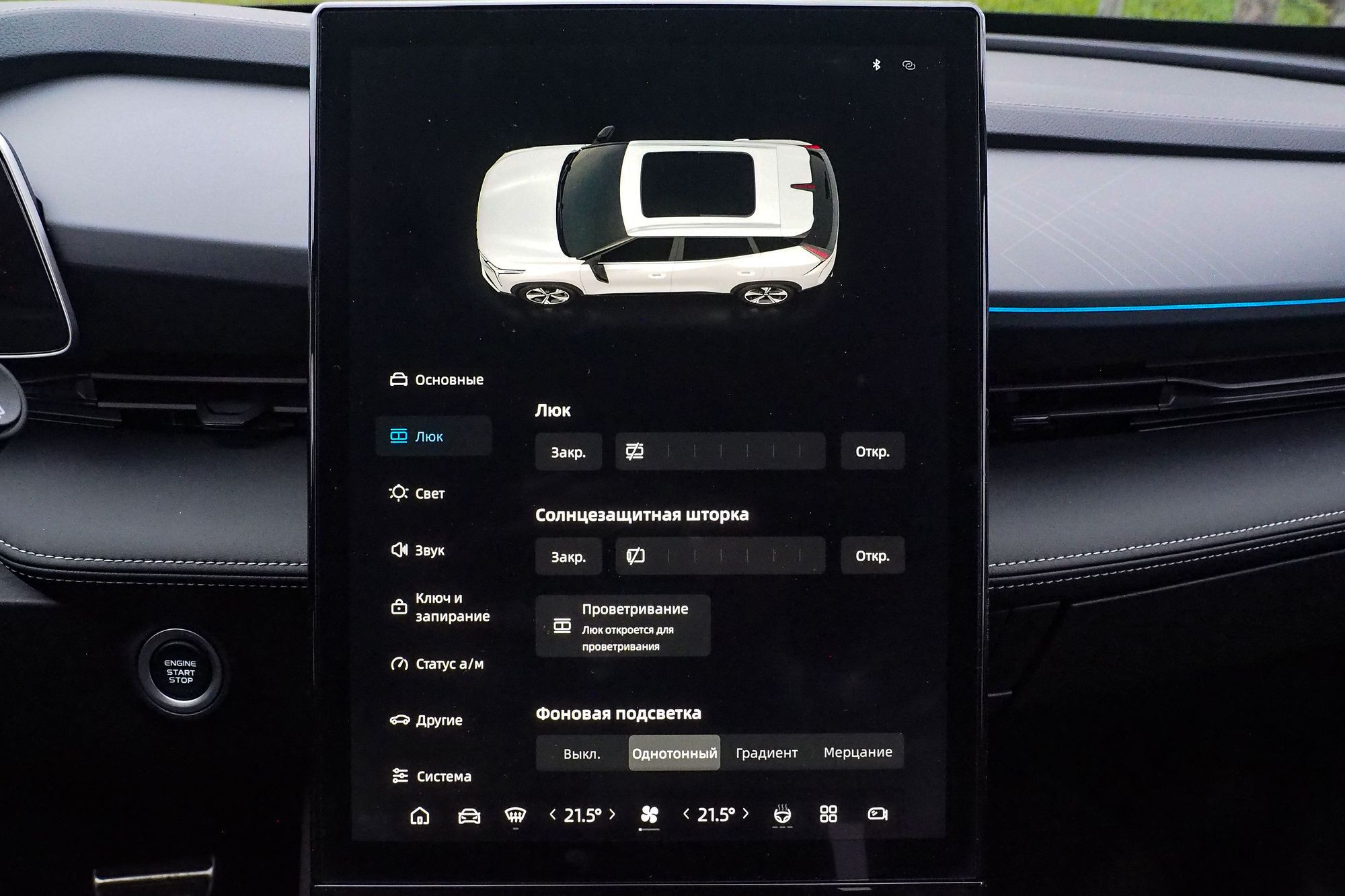 По счастью, на левой спице руля есть волшебная кнопка со звездочкой, на которую при помощи главного меню можно повесить некоторые функции – например, последовательный выбор режимов движения. Некоторые, но, увы, не любые: вам предложат выбор из принудительного включения кругового видеообзора, открывания багажника сервоприводом, управления боковыми зеркалами, ну и упомянутое переключение режимов. А вот для того, чтобы открыть люк в крыше, обязательно придется зайти в главное меню, выбрать слева пункт «Люк», ну а затем ткнуть в поле «Откр», причем отдельно для шторки и отдельно для самого люка.