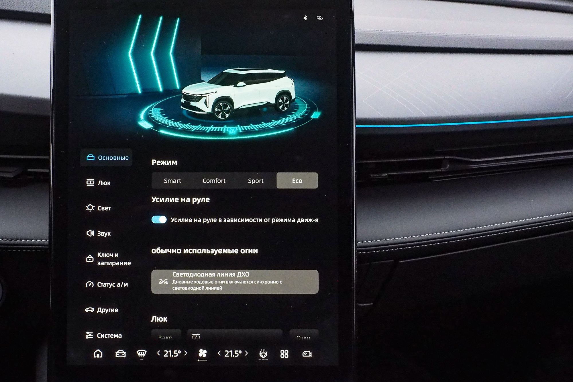 Да, в салоне Cityray практически отсутствуют физические кнопки, клавиши и «крутилки». Даже в блок слева от рулевой колонки помещен лишь корректор фар, а рядом с селектором коробки расположились только клавиши стояночного тормоза, «аварийки» и включения режима Parking. Все остальное – либо кнопками на спицах руля (а их не то чтобы очень много), либо через меню. В нижней части большого дисплея расположен ряд сенсорных кнопок, и некоторые из них имеют прямое действие: например, включают и выключают обогрев ветрового стекла и руля, позволяют повысить или понизить температуру, заданную климатической установке. А вот другие вызывают экран с более широким доступом к тем или иным функциям. Например, для полного доступа ко всем «теплым опциям» и расширенной настройке климата нужно ткнуть в область со значком вентилятора. Вот тогда можно будет настроить климат для водителя и переднего пассажира, включить обогрев сидений и заднего стекла.