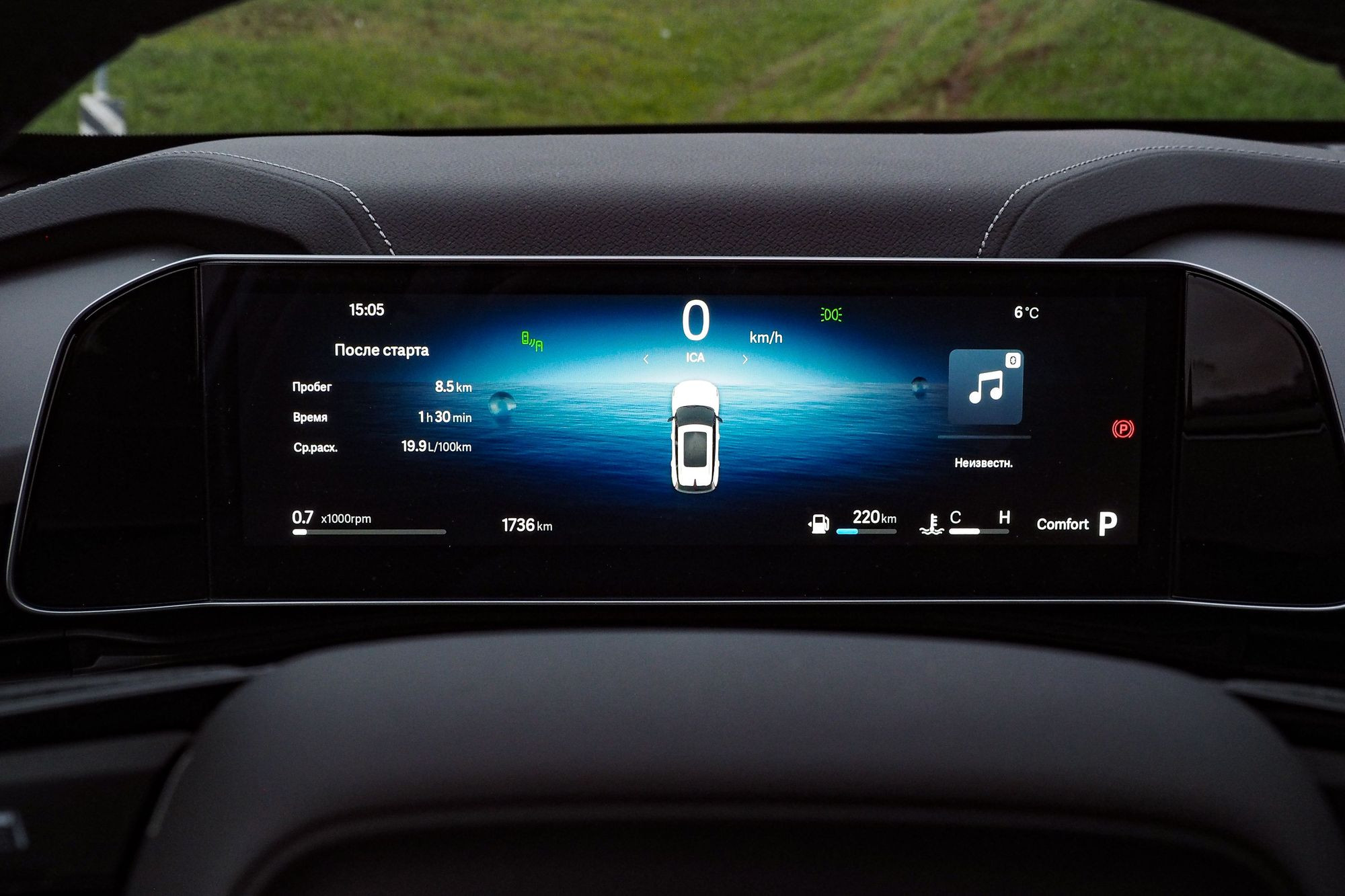Расстроило меня и отсутствие возможности настроить приборную панель в соответствии с моими предпочтениями. Ну вот привык я контролировать обороты, а тут они выводятся в левом нижнем ряду экрана в виде невнятной неградуированной полосочки и цифры, причем цифра – очень маленьким шрифтом. Смена режимов движения ничего не меняет на приборном экране, только справа внизу появляется соответствующая надпись, причем опять же – мелким шрифтом. Ну и зачем мне информация о том, какой трек сейчас проигрывает медиасистема, если все это есть на экране головного устройства?