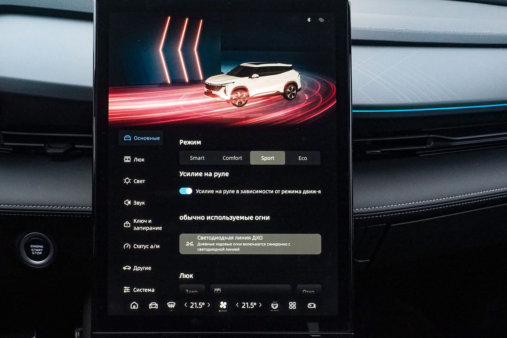 Изначально выбор режима движения (Eco, Comfort, Sport и Smart) тоже осуществляется через меню – соответствующий экран вызывается свайпом вниз. Но если вы хотите получить быстрый доступ к системам помощи водителю, включая помощь при спуске со склона, отключить систему стабилизации, включить или отключить систему Auto Hold, вам нужно сделать свайп вниз, а затем свайп влево.
