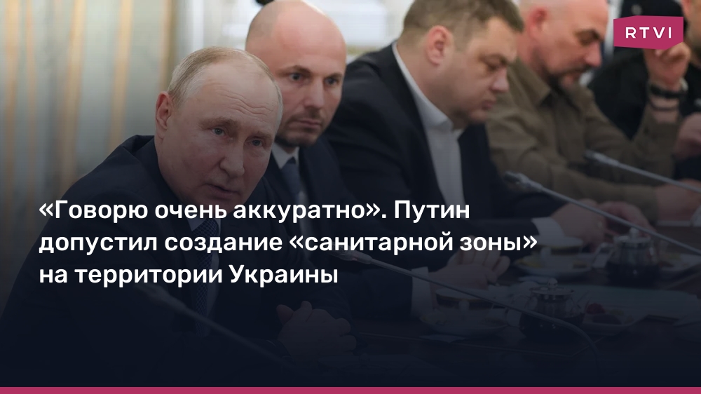 Президент России Владимир Путин допустил возможность создания санитарной зоны на территории Украины в целях прекращения обстрелов российских регионов. Об этом он заявил на встрече с военными корреспондентами, трансляцию которой ведет телеканал «Россия-1».