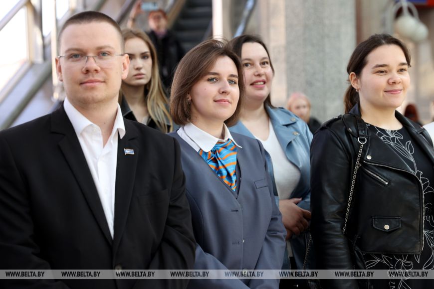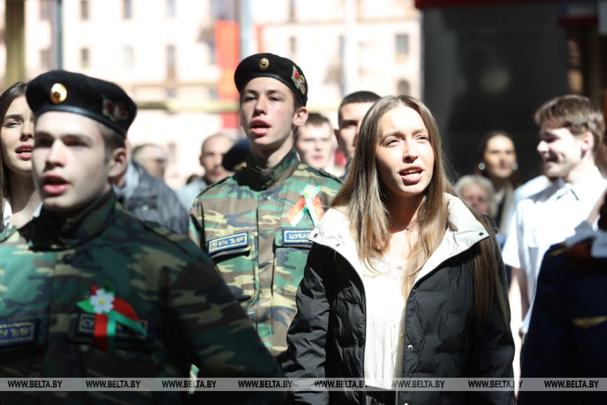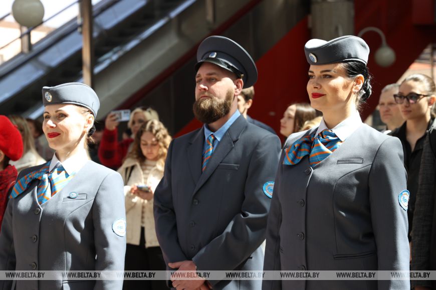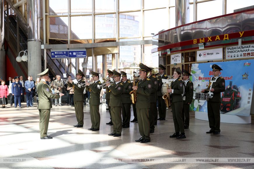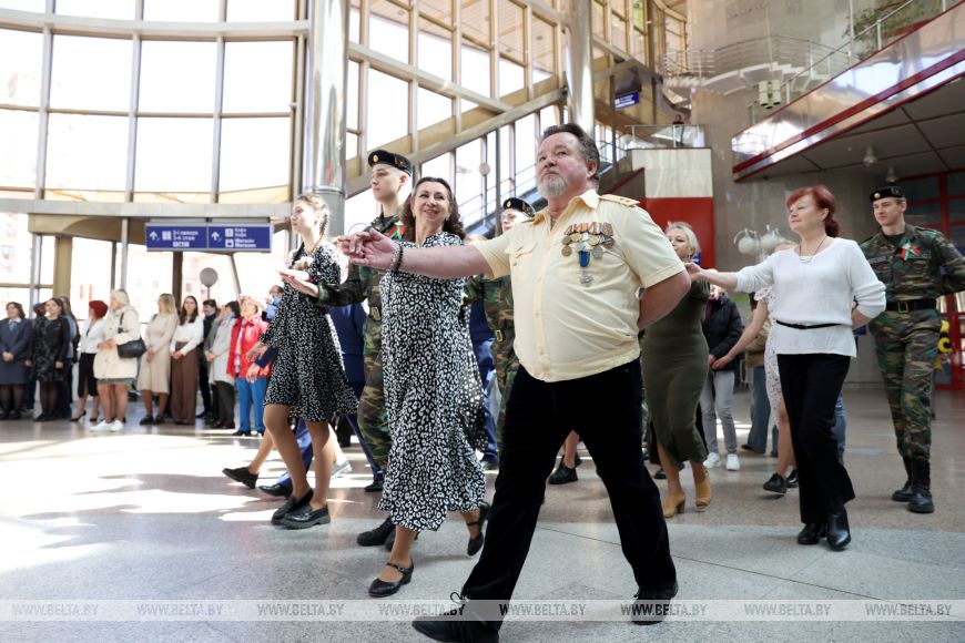 С военными песнями и танцами. Акция ко Дню Победы прошла на минском железнодорожном вокзале