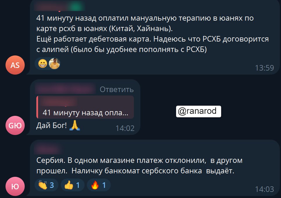 ⚡️ Карты UnionPay Россельхозбанка продолжают работать за границей, несмотря на официальное сообщение от банка об ограничениях.