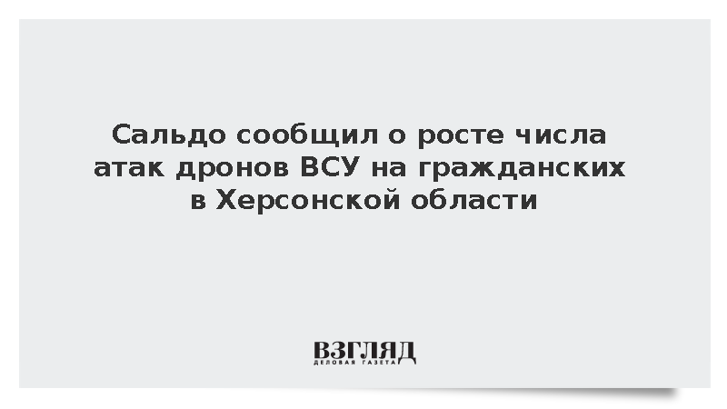 Дроны ВСУ, не обнаружив военных объектов в Херсонской области, начали атаковать гражданское население, заявил губернатор региона Владимир Сальдо.