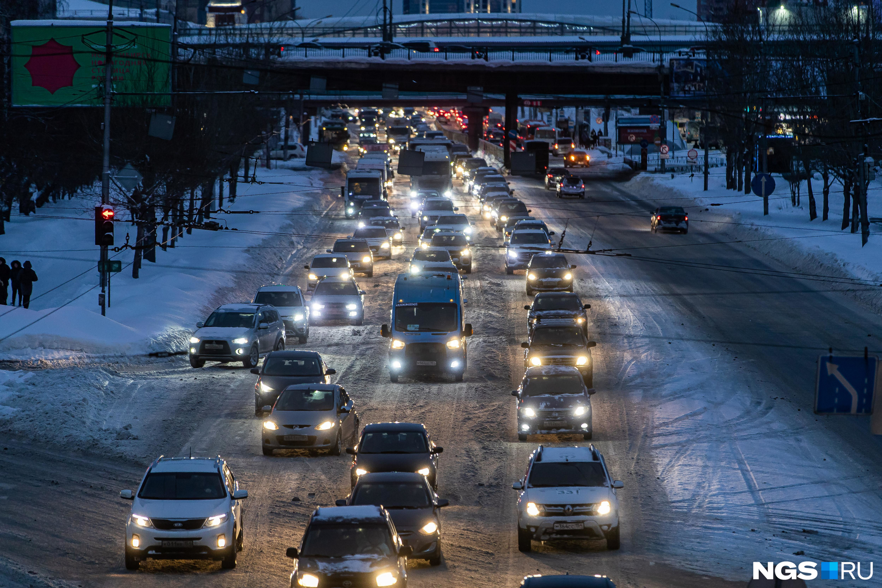 «300 метров за 30 минут»: Новосибирск встал в пробках в морозное утро — что пишут об этом водители