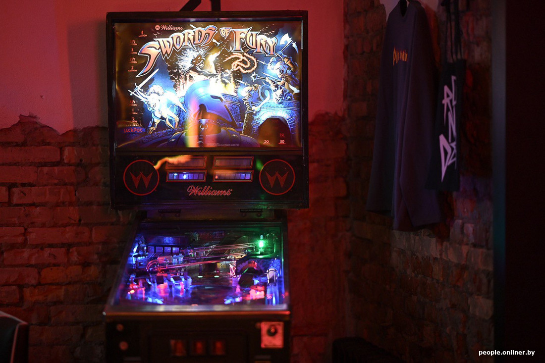 — Это мечта, но, наверное, еще более значимая вещь для меня, которую тяжело было доставить, — первый в белорусских барах пинбол-автомат. Называется он Swords of Fury, произведен в 1988 году. Нам хотелось дать нашим посетителям возможность попробовать и почувствовать, что это такое.