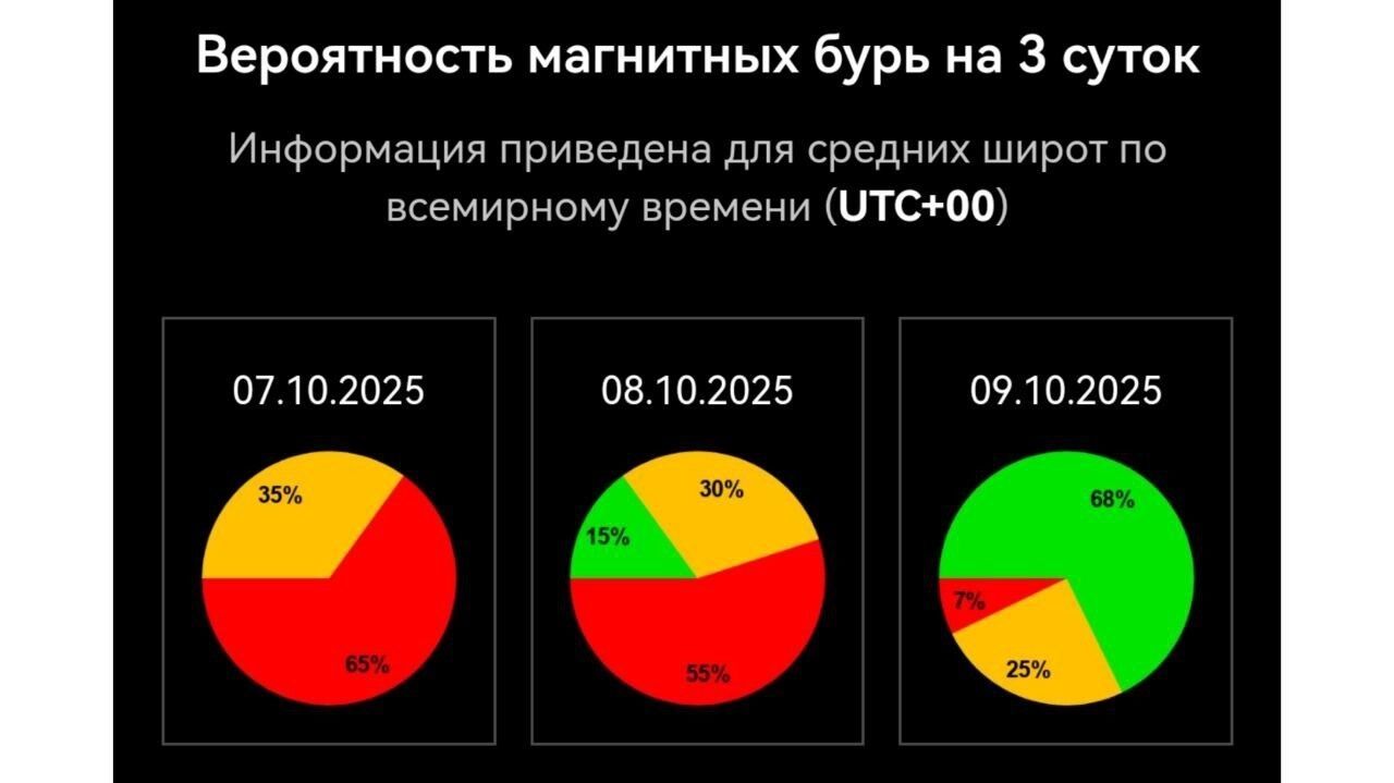 Вероятность магнитной бури в этот день — 55%, перехода магнитосферы в возбужденное состояние — 30%. При этом плазма, выброшенная с поверхности Солнца еще 3 октября, достигла Земли еще накануне. Ученые отмечали, что возмущения в магнитосфере могут продлиться более суток. Правда, одновременно с этим серьезных последствий все же быть не должно.