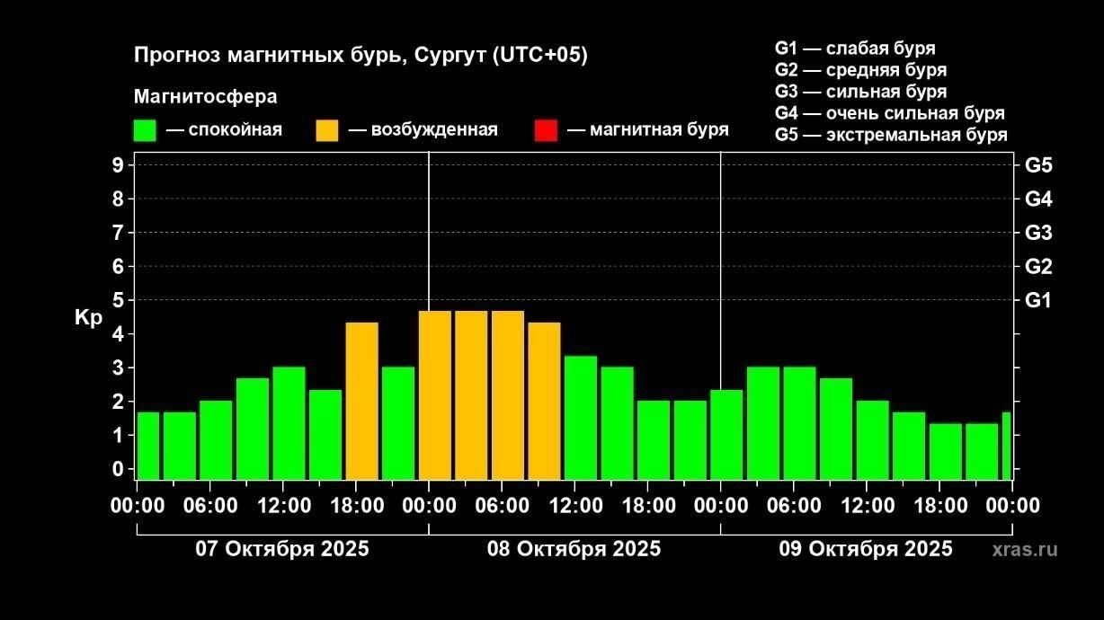 Прогноз магнитных бурь в ХМАО на 8 октября