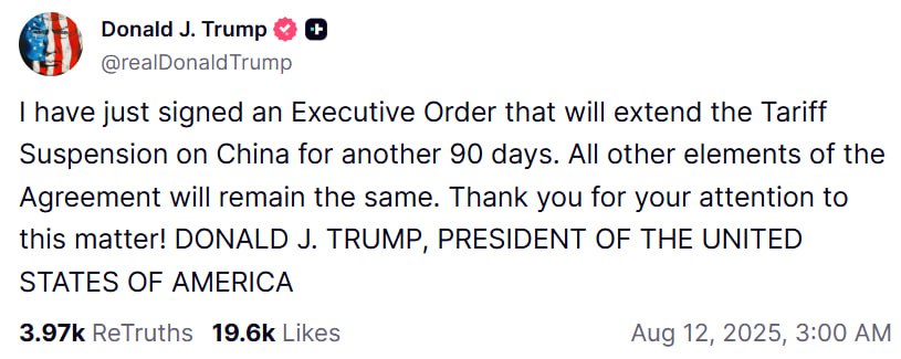 ΠΡΠ΅Π·ΠΈΠ΄Π΅Π½Ρ Π‘Π¨Π ΠΏΡΠΎΠ΄Π»ΠΈΠ» ΡΠΎΡΠ³ΠΎΠ²ΠΎΠ΅ ΠΏΠ΅ΡΠ΅ΠΌΠΈΡΠΈΠ΅ Ρ ΠΠΈΡΠ°Π΅ΠΌ Π΅ΡΠ΅ Π½Π° 90 Π΄Π½Π΅ΠΉ. ΠΠΎ Π΅Π³ΠΎ ΡΠ»ΠΎΠ²Π°ΠΌ, Π²ΡΠ΅ ΠΎΡΡΠ°Π»ΡΠ½ΡΠ΅ ΠΏΠ°ΡΠ°ΠΌΠ΅ΡΡΡ ΡΠΎΠ³Π»Π°ΡΠ΅Π½ΠΈΡ ΠΎΡΡΠ°ΡΡΡΡ ΠΏΡΠ΅ΠΆΠ½ΠΈΠΌΠΈ. Π’Π΅ΠΏΠ΅ΡΡ ΠΎΠ½ΠΎ Π±ΡΠ΄Π΅Ρ Π΄Π΅ΠΉΡΡΠ²ΠΎΠ²Π°ΡΡ Π΄ΠΎ 10 Π½ΠΎΡΠ±ΡΡ. ΠΠ΅ΠΊΠΈΠ½ ΡΠ°ΠΊΠΆΠ΅ ΠΏΠΎΠ΄ΡΠ²Π΅ΡΠ΄ΠΈΠ» ΠΏΡΠΎΠ΄Π»Π΅Π½ΠΈΠ΅ ΠΌΠΎΡΠ°ΡΠΎΡΠΈΡ.