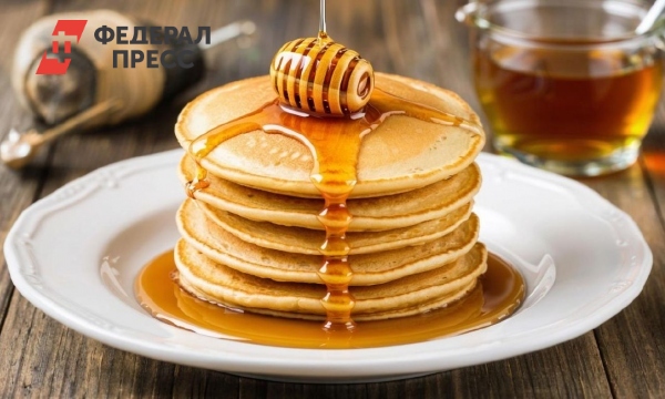 Все ингредиенты смешивают, тесто оставляют на 15 минут. Оладьи жарят на сковороде и подают горячими, полив сверху медом.