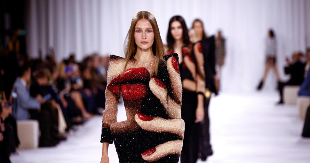 Passent des créations brodées de milliers de perles reproduisant un visage de femme à la bouche rouge. « Balmain, c'est aussi le savoir-faire, la broderie, les perles, les chaînes. Je voulais revenir à mes iconiques à un moment où la mode ne fait pas ce qu'elle devrait faire, c'est-à-dire être authentique. Moi, j'ai décidé d'être moi-même plus que jamais. » Du pur Rousteing - ou Balmain, on ne sait plus, tant il incarne la maison aux yeux de ses 9,9 millions de fans sur Instagram ! Des fourreaux sculpturaux, des costumes déconstruits exacerbant la féminité puissante de celles qui les portent, des minaudières flacons de parfum ou bien palettes de maquillage, des hauts talons vertigineux. Le DA superstar sort saluer, entouré d'un groupe de mannequins de tous âges et de toutes origines, en nuisettes de soie coupée dans le biais et couleur chair, d'une simplicité étonnante. « Ce minimalisme est une facette de moi que l'on ne connaît pas et qui préfigure un nouveau chapitre de Balmain dans les prochaines saisons. »