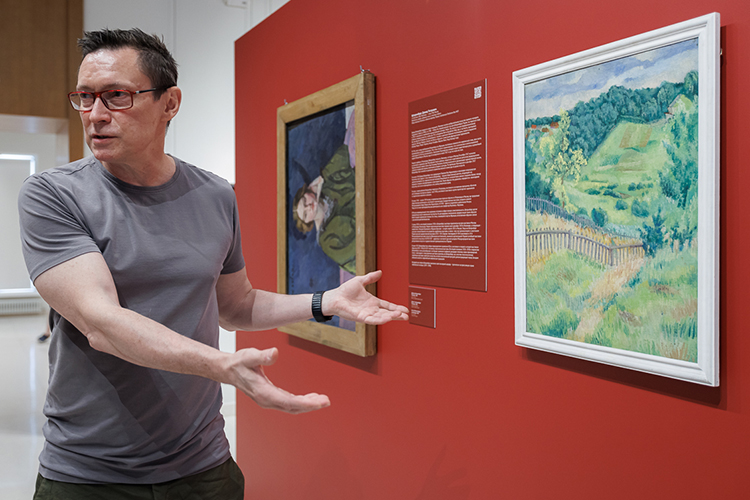 Эта стена включает в себя шесть работ Кандинского. Такого количества «кандинских» на одной выставке в Казани еще не было — отмечает куратор.