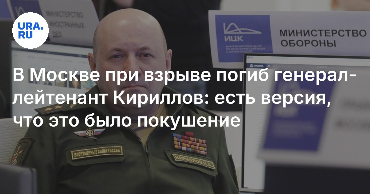 В результате взрыва погибли генерал-лейтенант войск РХБЗ ВС России Игорь Кириллов и его помощник, сообщает RT. Корреспондент URA.RU отправил запрос в Минобороны с просьбой прокомментировать информацию. Ответ ожидается.