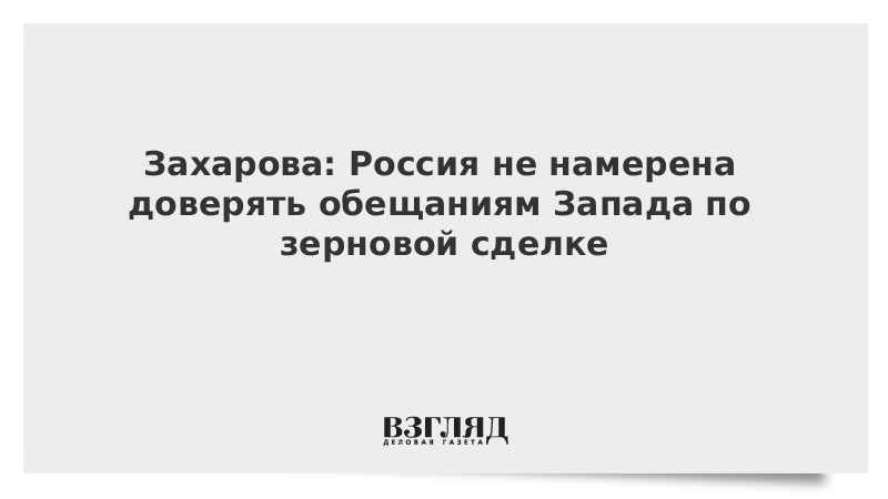 Москва не планирует доверять заверениям западных стран и ООН по зерновой сделке, ее продолжение может произойти лишь после конкретных результатов, заявила официальный представитель МИД Мария Захарова.