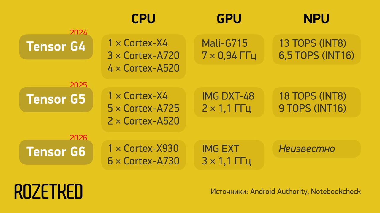 Чипсеты Tensor будет проектировать сама Google, а производство микросхем поручат тайваньской TSMC, следует из недавней утечки. Чип для семейства Pixel 10, Tensor G5, будет выпускаться по техпроцессу N3E — прямо как Apple M4.