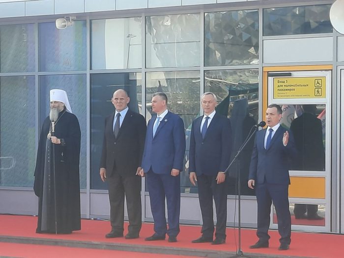 В 17:00 на площадке возле станции началась сама церемония открытия. На ней собрались сотни горожан, приняли участие официальные лица: губернатор Андрей Травников, депутат Госдумы Леонид Слуцкий, сенатор Александр Карелин, мэр Новосибирска Максим Кудрявцев, а также митрополит Новосибирский и Бердский Никодим. Глава региона признал, что строительство шло сложно, словно кто-то «не давал расстаться с пресловутой цифрой 13 и появиться 14-й станции».