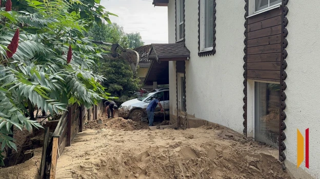 По предварительным данным, причиной происшествия стало размывание системы водоотведения: поток воды, смешанный с песком, прошел по склону и затопил улицу Набережную.