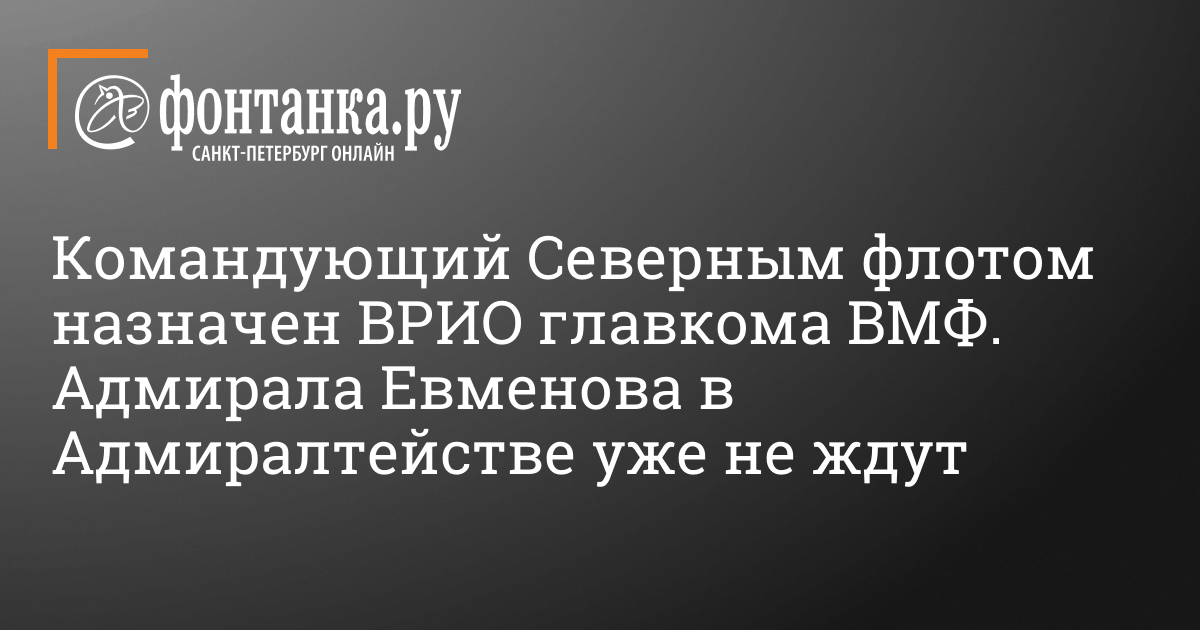 В пресс-службе ВМФ «Фонтанке» не стали комментировать вопрос об отставке Евменова, попросив направить письменный запрос в Департамент информации и массовых коммуникаций Минобороны.