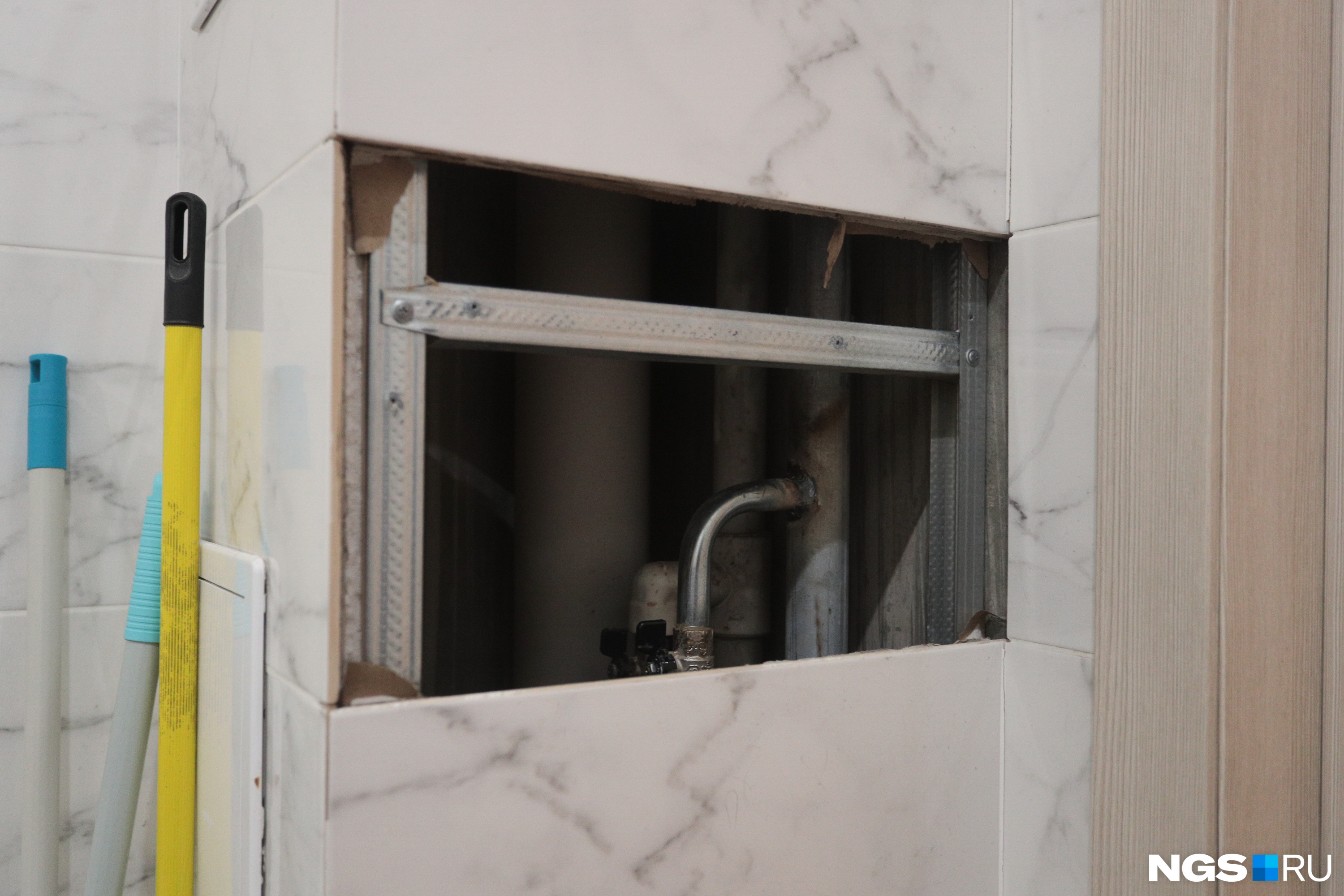 Цунами обрушилось на квартиру Анны и Ирины 16 января. В коробе, которым скрыты коммуникации, прорвалась труба горячего водоснабжения, и поток обжигающей воды ринулся в квартиру. Как и все стены в санузле, короб отделан кафельной плиткой — кое-где от напора воды она начала отклеиваться и теперь слегка пошатывается, осторожно показывают девушки.
