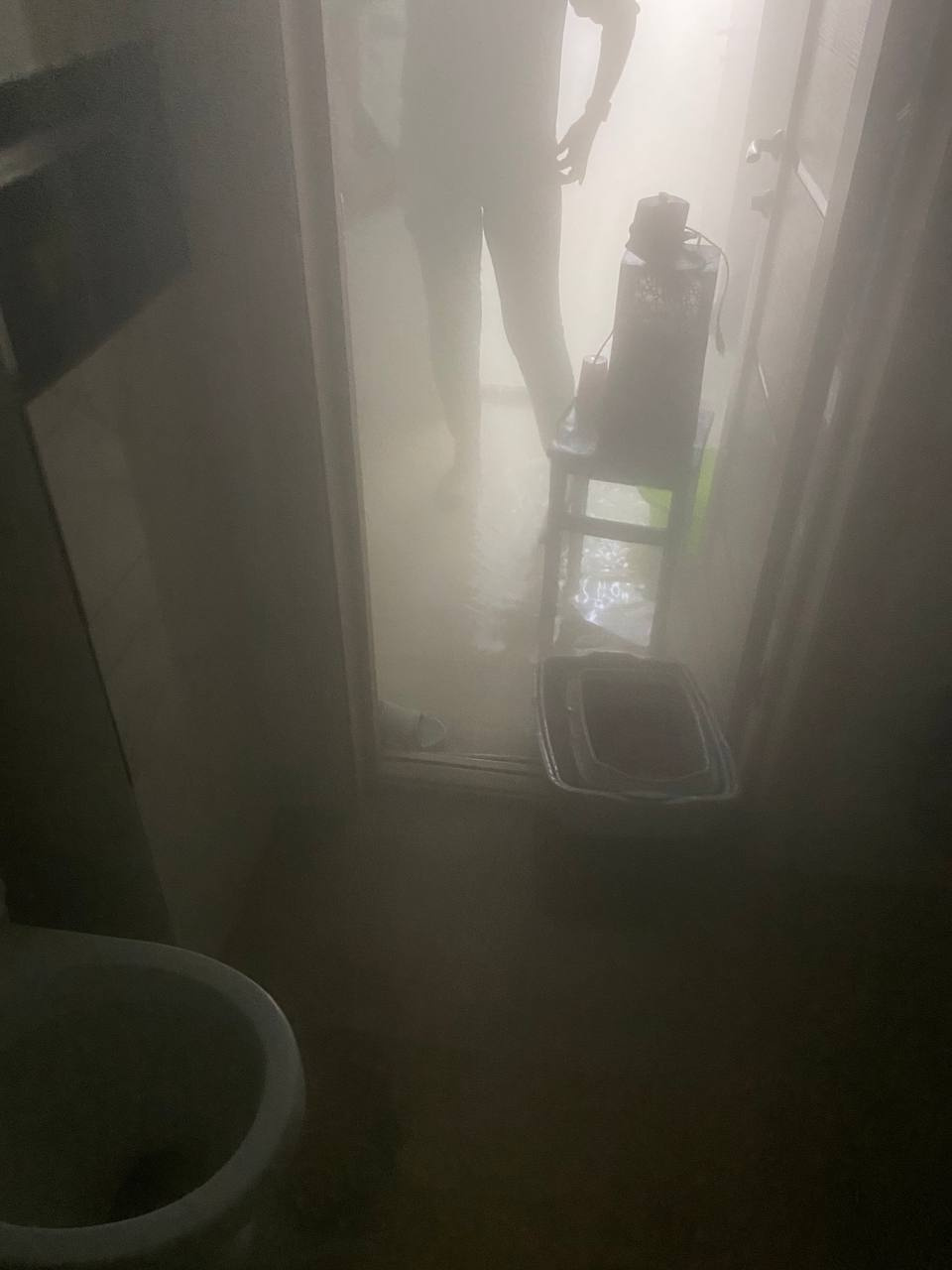 Быстро попасть в квартиру оказалось сложно. Было горячо и практически ничего не видно из-за пара, стеной поднявшегося в помещениях.