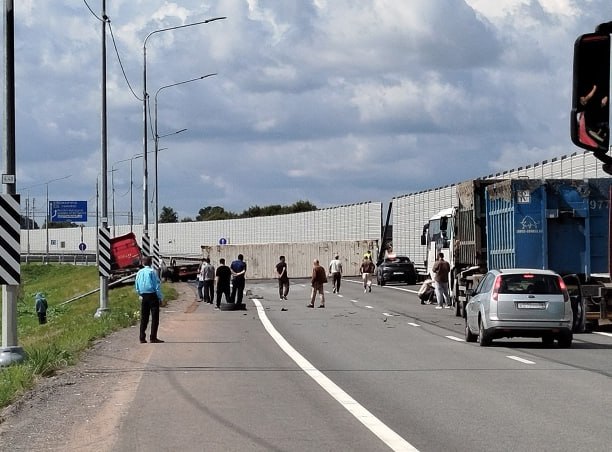 Как сообщили в ФКУ Упрдор «Северо-Запад», грузовик наехал на опору освещения. Никто не пострадал. Объезд организован через Русско-Высоцкое. Движение уже открыто.