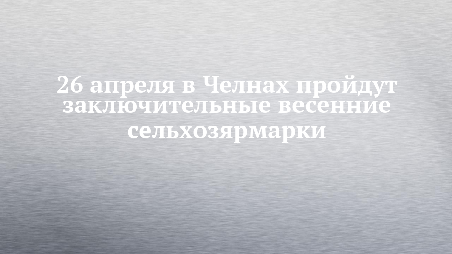В предстоящую субботу, 26 апреля, в Набережных Челнах пройдут заключительные в этом весеннем сезоне сельскохозяйственные ярмарки. Торговля традиционно развернется на трех площадках города: перед стадионом «Строитель», на территориях ипподрома и агропромышленного парка «Южный».