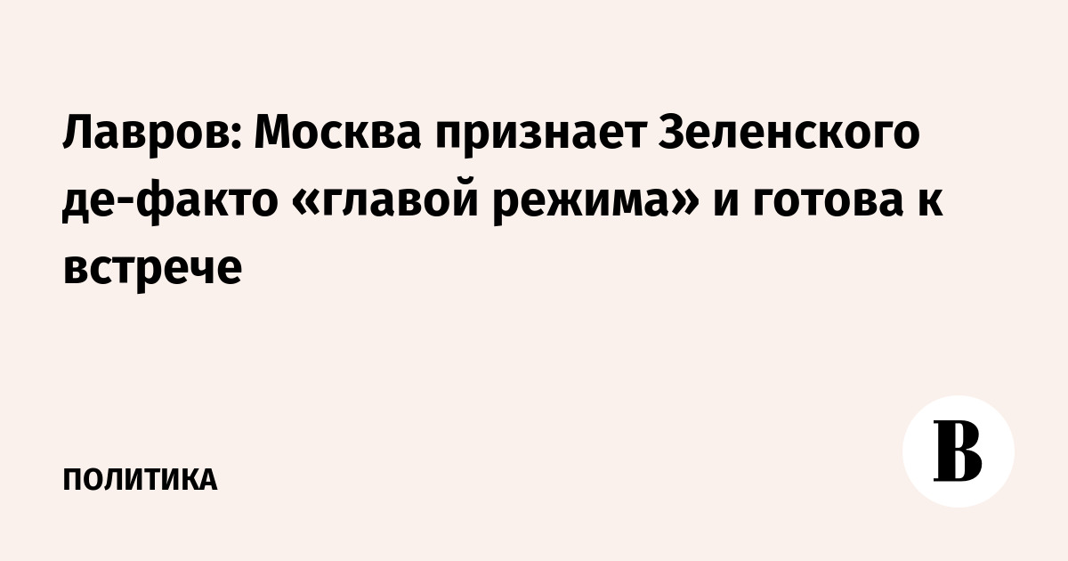 Россия признает президента Украины Владимира Зеленского де-факто «главой режима», в этом качестве Москва готова с ним встречаться, заявил министр иностранных дел РФ Сергей Лавров в интервью NBC News.
