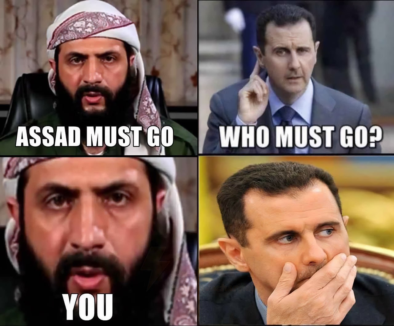 ➖Президент Башар Асад покинул Дамаск, предположительно направившись в Москву для проведения переговоров. В то же время премьер-министр Мухаммед Гази аль-Джаляли остался в городе, выразив готовность к мирному урегулированию ситуации при условии избрания сирийцами нового правительства;