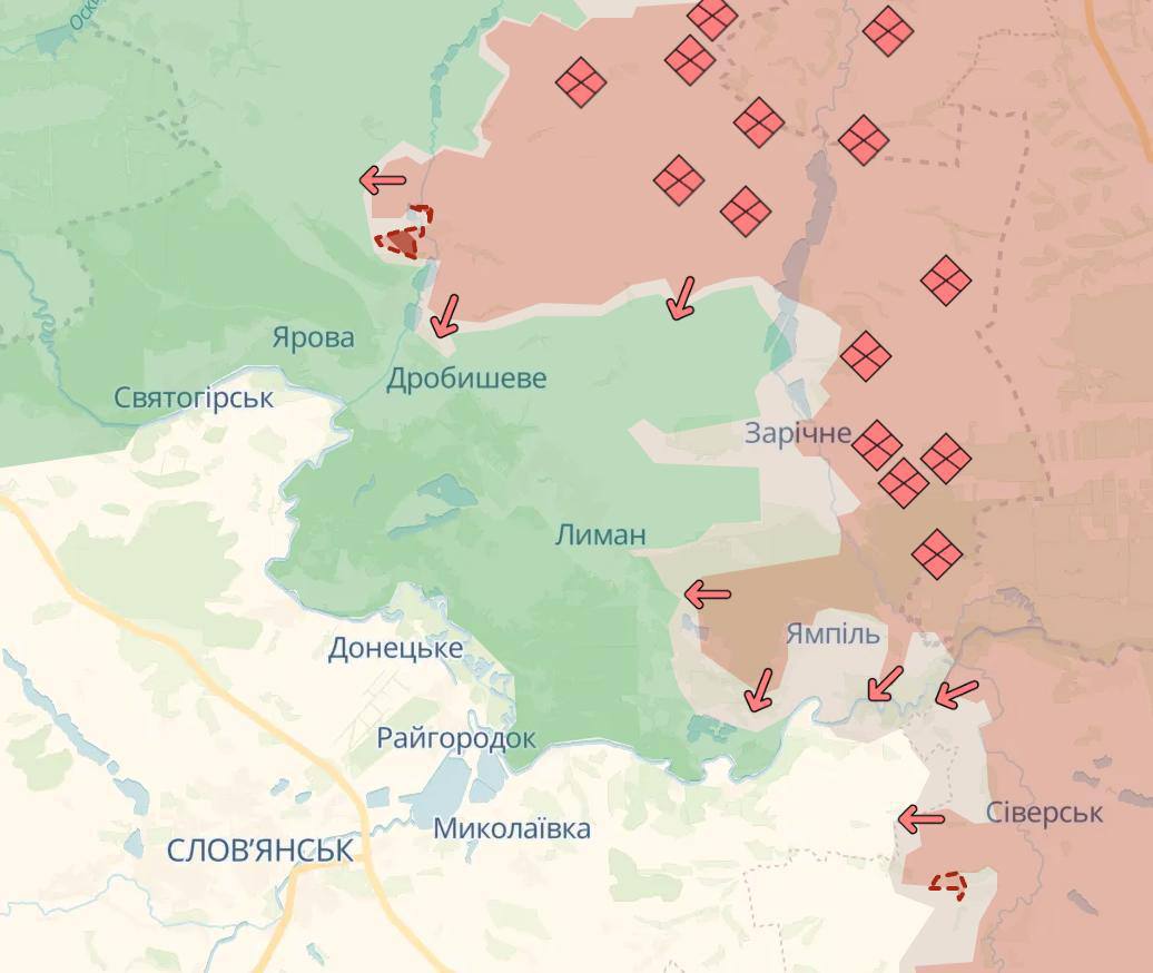 ВС РФ продвинулись под Святогорском и Северском на севере Донецкой области, — следует из обновлённых данных аналитического проекта Deep State.