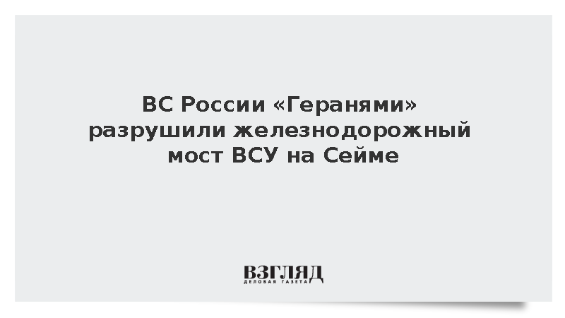 Минобороны России сообщило о нанесении удара по железнодорожному мосту через реку Сейм в Сумской области с использованием БПЛА «Герань», сообщается в Telegram-канале ведомства. Этот мост активно применялся украинскими военными для переброски техники и грузов.