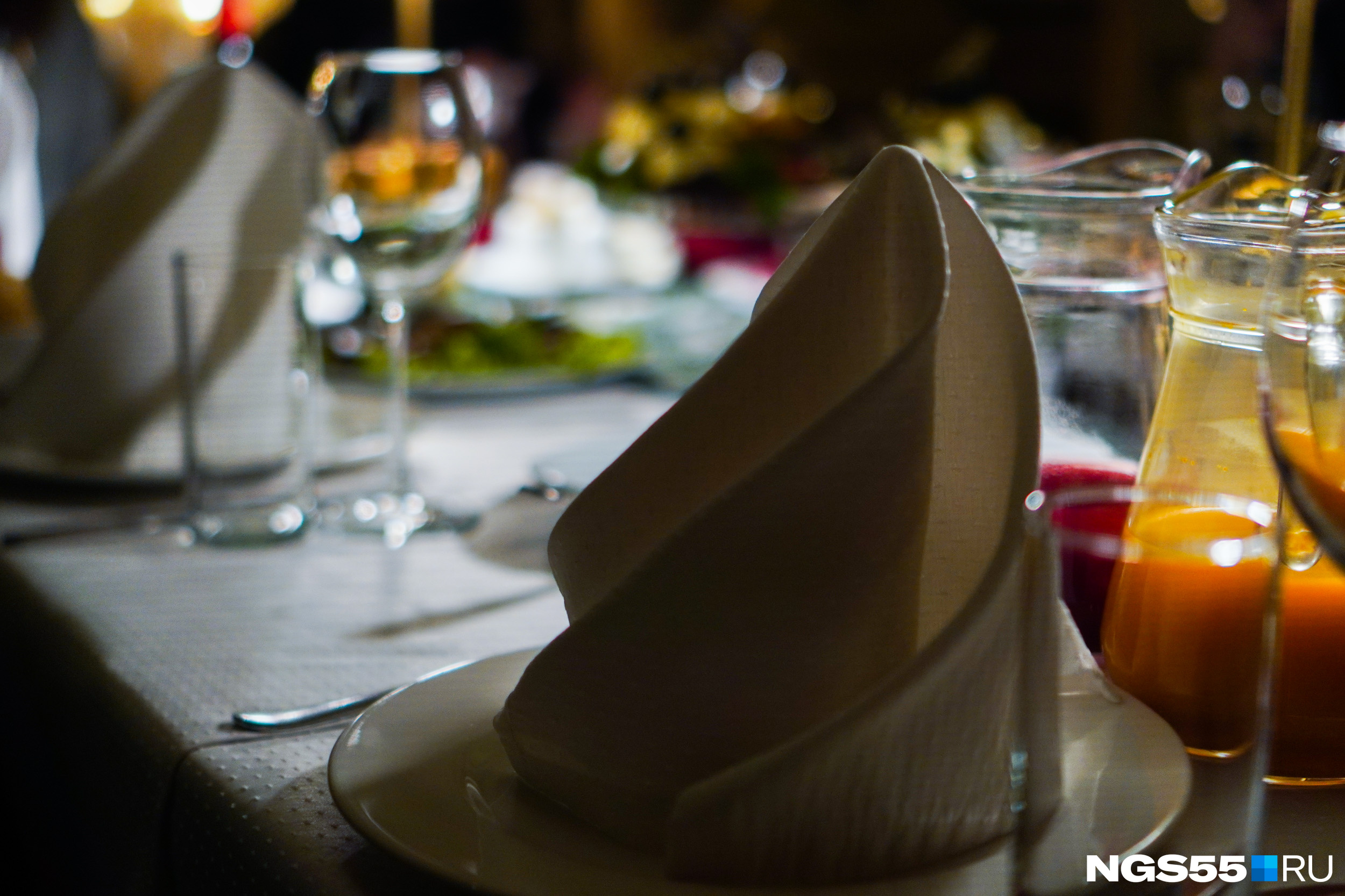 — При банкетном исполнении необходима полная сервировка стола всеми видами тарелок и приборов. Стеклянная посуда должна соответствовать минимум пяти видам напитков: вино, шампанское, водка, коньяк, безалкогольные напитки. Все столы должны быть закрыты фуршетными юбками одинакового цвета и фасона, — гласит описание объекта закупки.
