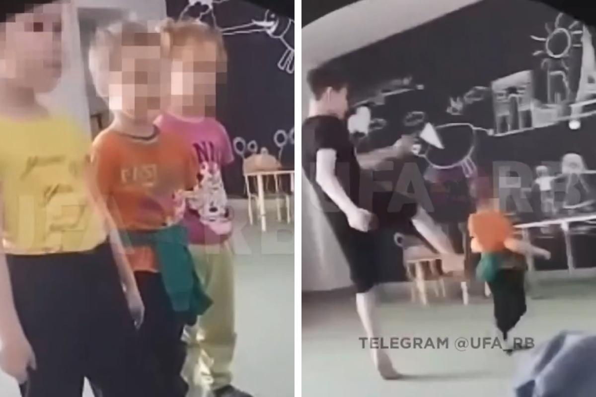 Кадры издевательств опубликовал Telegram-канал Ufa_rb. На них видно, как в шеренгу стоят трое маленьких детей. Самый младший плачет. Двое детей рядом показывают на него, он смотрит на них и начинает кричать.